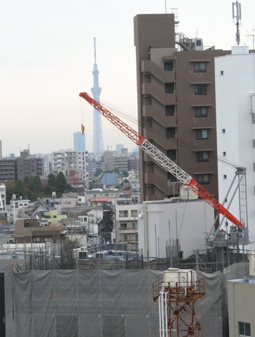 スカイツリーを隠すマンション工事着々と id=957 私の住む駒込では、マンション建設が盛ん。北側には隣接地に7階建てと道路を隔てて8階建ての工事中。西側数軒駒込駅寄りには9階建てワンルームマンション建設中。南東側の現在9階リビングから見えているスカイツリーを隠す場所の不忍通り沿いには、13階建てのマンション建設中。 2012/11/14 13:08:05