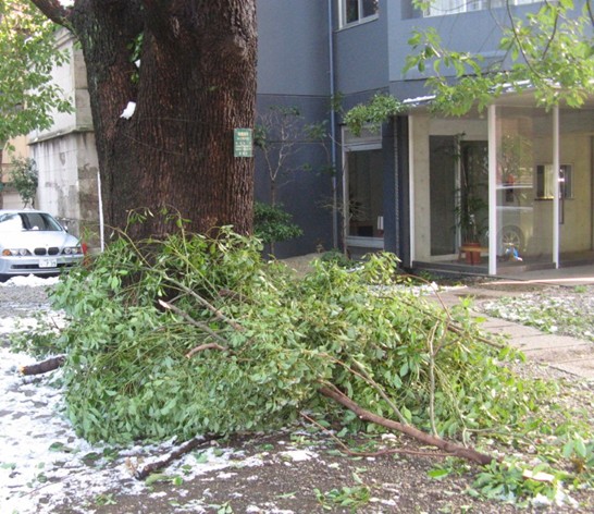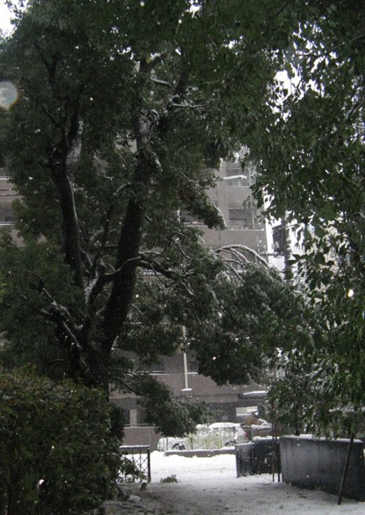 大雪で庭のクスの枝沢山折れる id=993 1月14日(月・成人の日)の昼前から雪になったこの冬の初雪が大雪となり、テレビでは積雪東京都心7cm。樹林館玄関横の大クスの枝が沢山折れる。門横のクスの大枝も今にも折れそうで心配したが、何とか保った。                   2013/01/15 01:19:26