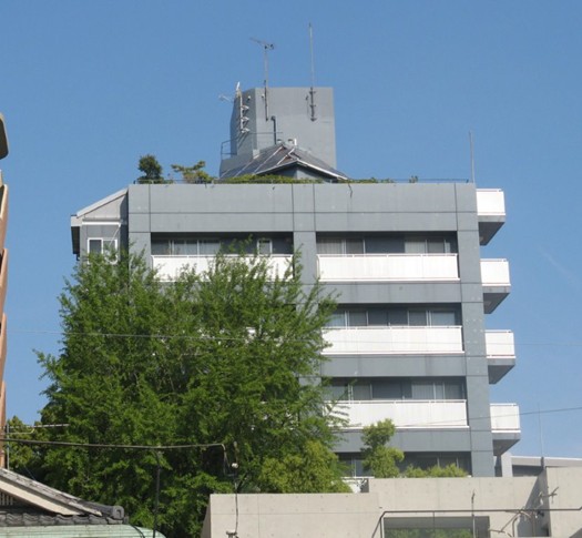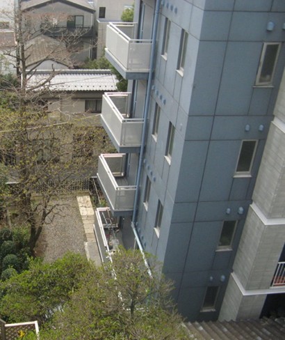 樹林館裏に完成した田中ガーデンの1LDK主体の7階建賃貸マンション「ブラッサム駒込」を、3月29日(金)10時から隣家の下谷ご夫妻と見学。案内は、設計者のK2遠藤克巳氏。今日15時から入居が始まる。  写真は、7階バルコニーから見た樹林館。2013/03/31 02:00:05