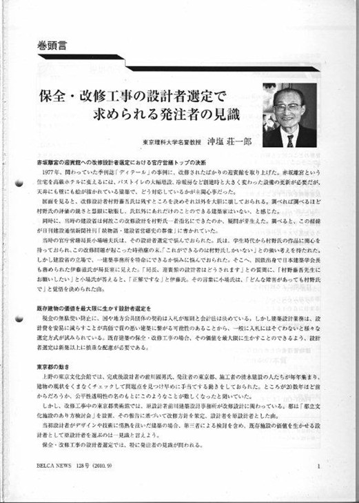 内田祥哉先生日本学士院会員ご就任を祝う会 id=435 4月17日(日)16時から学士会館で開催の、内田祥哉先生日本学士院会員ご就任を祝う会に出席。東日本大震災を受け、会の名前は「祝う会」から「先生とお話する会」と変わった。 最初に内田先生のご挨拶があり、今回の震災で大きい被害を受けた陸前高田は漁業の町だけでなく、気仙大工といわれる社寺建築など日本中で活躍している伝統工法の優れた大工さんを輩出している町とのこと。気仙大工に活躍の場を与えて欲しい、との話。 5年前まで東北大学教授だった伊藤邦明氏から、東北大学建築学科棟の被害状況の話を伺う。倒壊はしなかったが、低層から高層に切り替わるところの柱が酷いダメージ。彼の設計した隣の14階建ては無傷で、そこから撮った写真を送って下さる由。 横田昌幸NTTファシリティーズ名古屋支店長からは、大震災での通信局舎被害状況を聞く。平屋のALCや鉄骨造13棟が壊滅した由。船や車が外壁を突き破ったとのこと。斎藤光巧君設計の石巻電話局は、電源室を2階にしていたお陰で、津波は3階の高さまで来たが、2階には水はそれほど入らず、復旧は早かった由。 高橋靗一、宇野英隆、巽和夫、武者英二、小原誠、原広司、尾島俊雄、山下和正、八木幸ニ、本多昭一、塚越功、友沢史紀、長澤泰、陣内秀信、長島雅則、布野修司の諸氏ら50人以上の方々と親しくお話できた。長島氏は、つい先日MITでの会合に出席、ミッチェル先生の墓詣りをされた写真を見る。 2011/04/18 01:50:28
